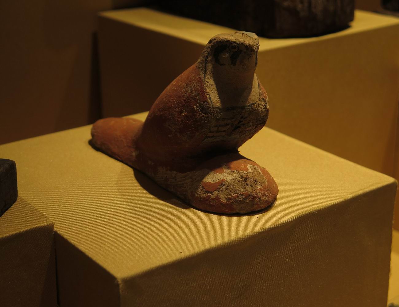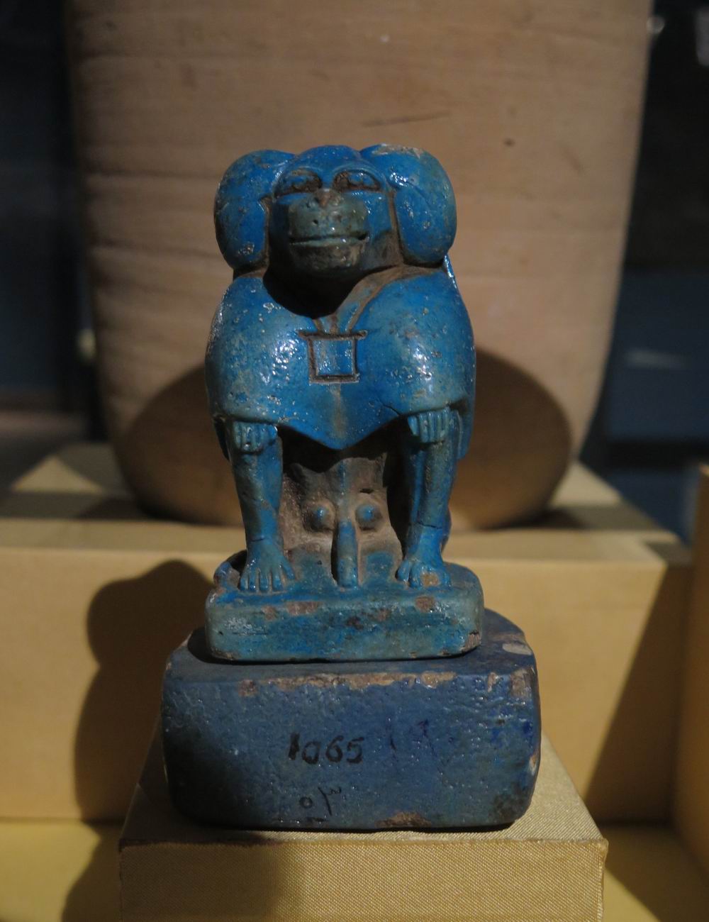 forme du babouin. Ses attributs masculin sont bien représentés, un collier muni d'un pendentif orne son cou. |