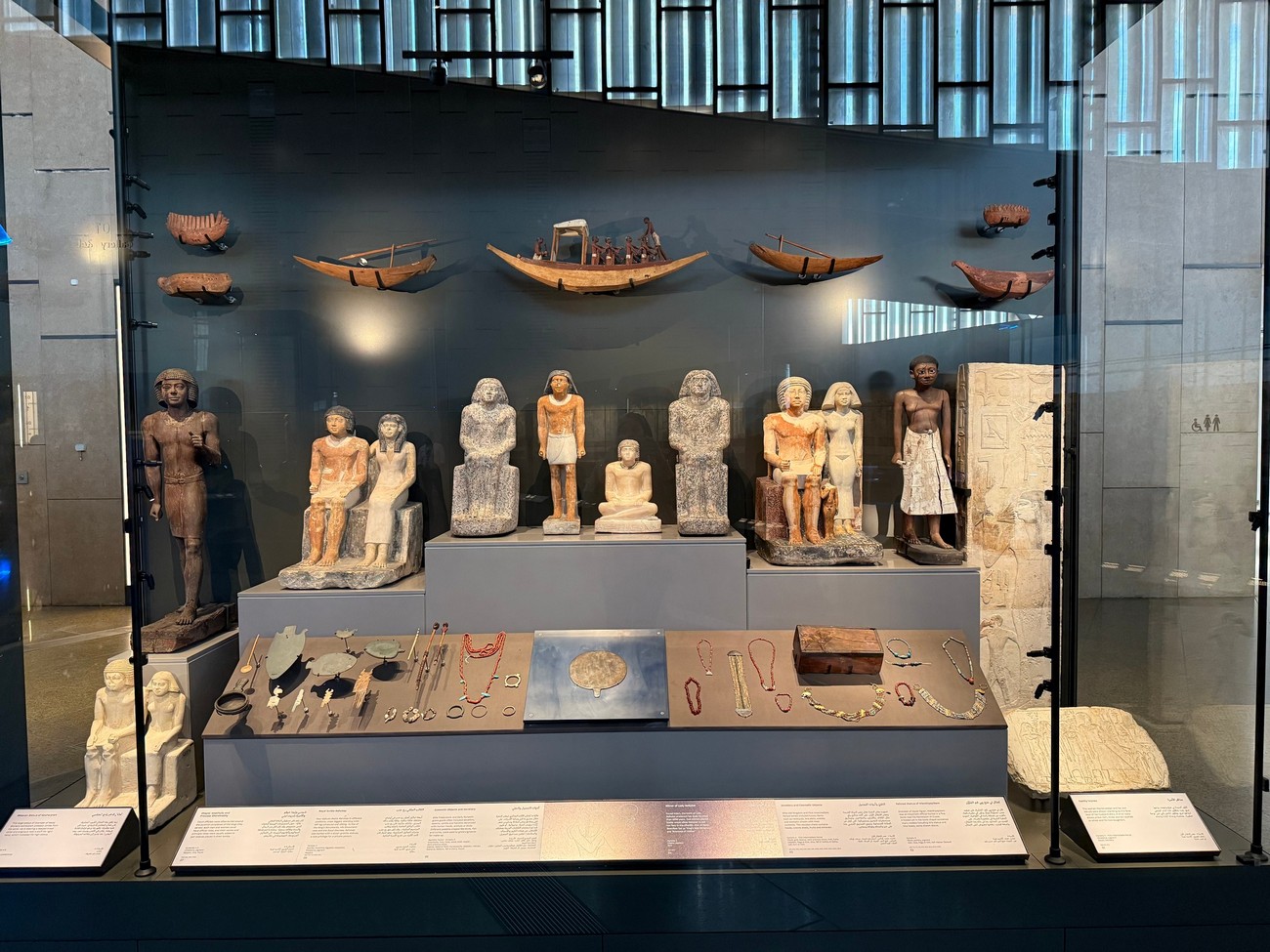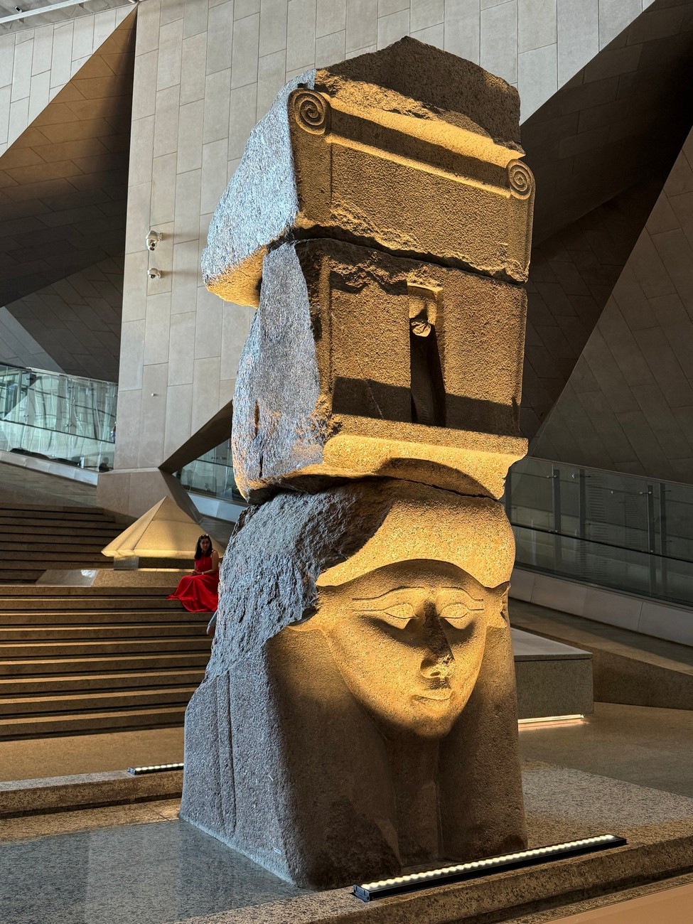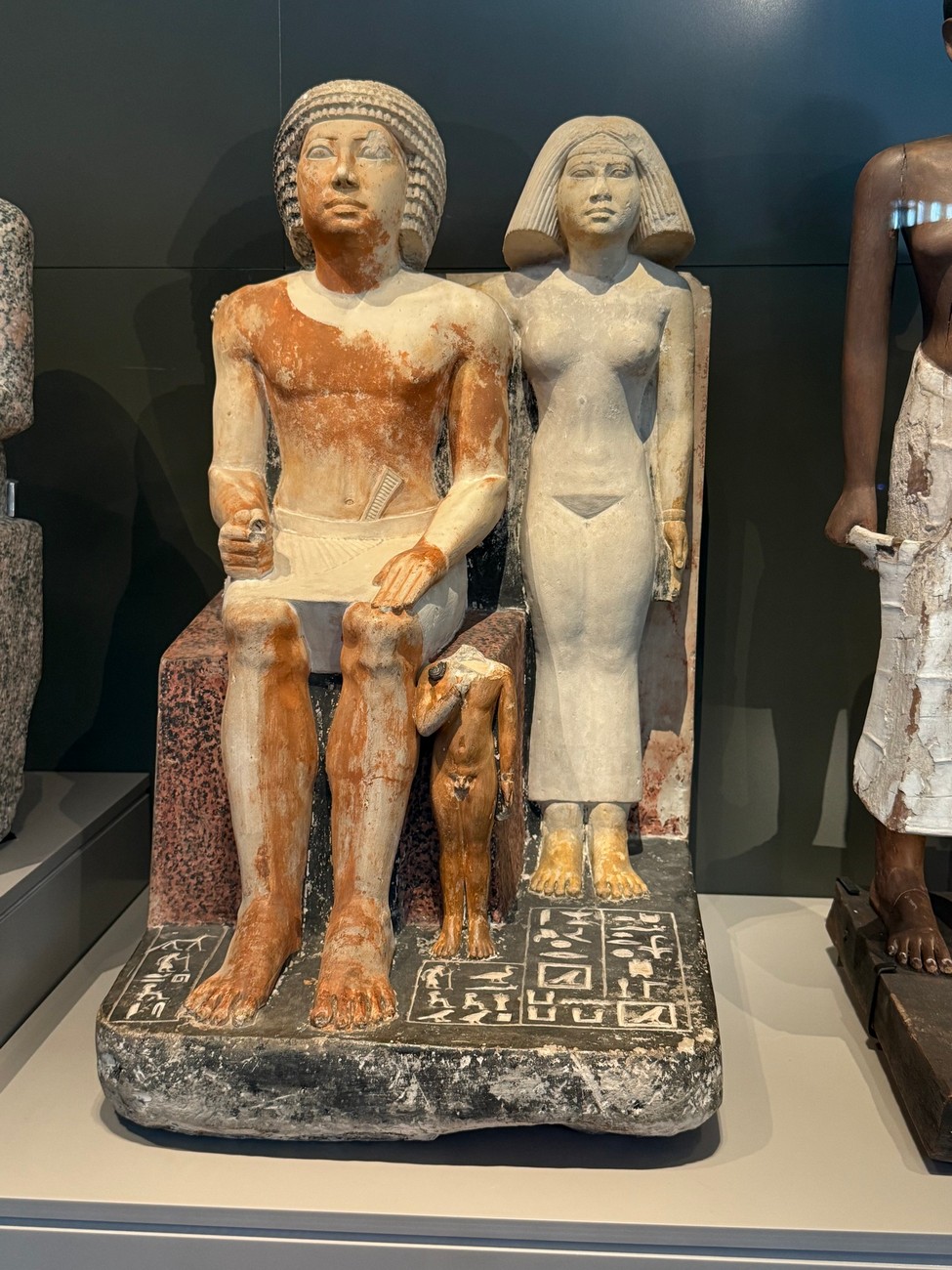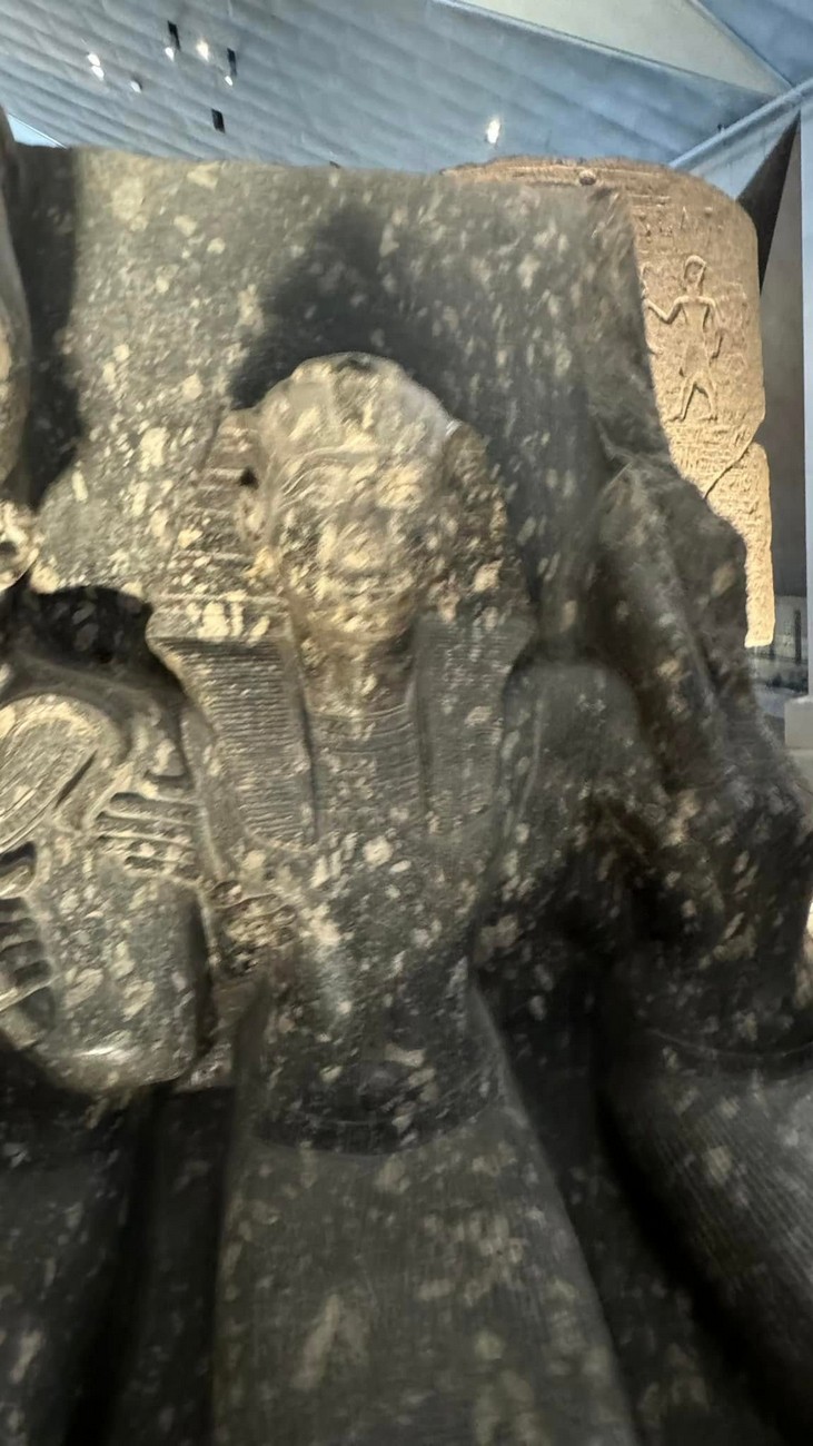 statuaire avec la déesse Hathor ou Isis, le dieu Osiris et le roi,