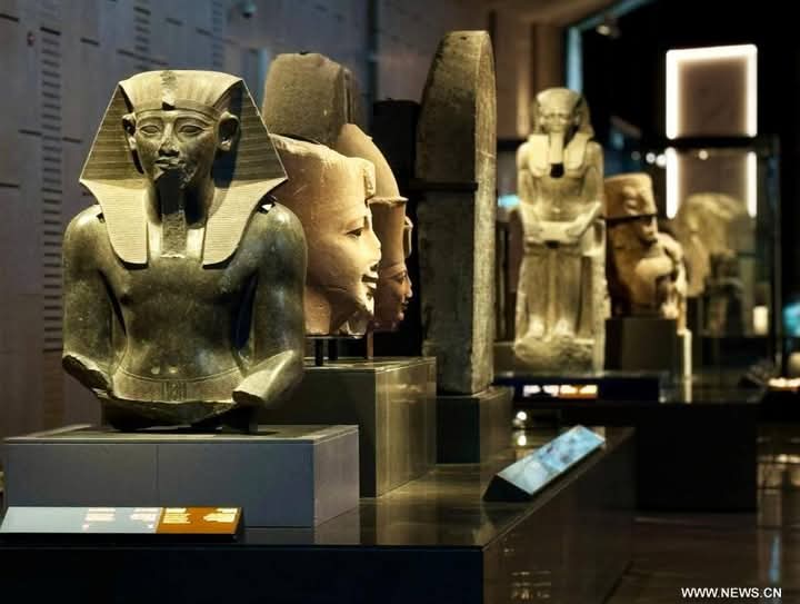 | Statues et têtes royales. |