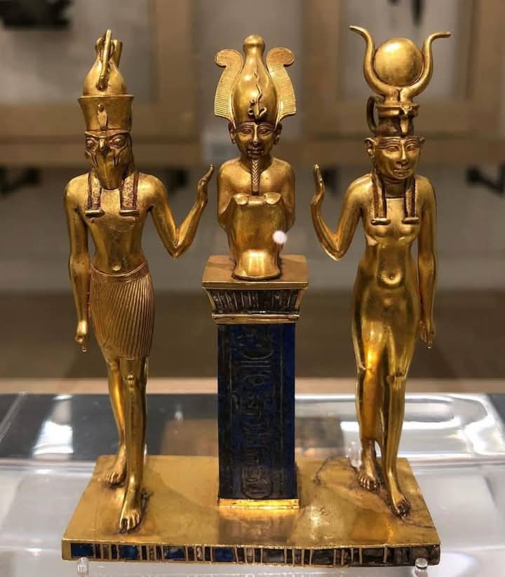 osiriaque : Isis et Horus encadrent le dieu Osiris. |
