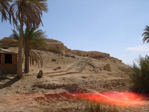 Ainsi un fils de Zeus reconnu dieu vivant des Egyptiens devenait le premier pharaon hellène. Nul ne sait si Alexandre, décédé à Babylone à l'âge de 33ans, ramené en Egypte, fut enterré à Alexandrie ou à Siwa. Dans l'oasis, la montagne des morts, le Gebel el-Mawta, est creusée de tombes où les sarcophages de l'époque gréco-romaine ont été pillés. Toutes n'ont pas été fouillées. Quatre d'entre elles, Si Amon, Niperpa Thot, Mesou Isis et la tombe dite du Crocodile, gardées et fermées à clé, contiennent des fresques murales comparables à celles des mastabas du Nil. |