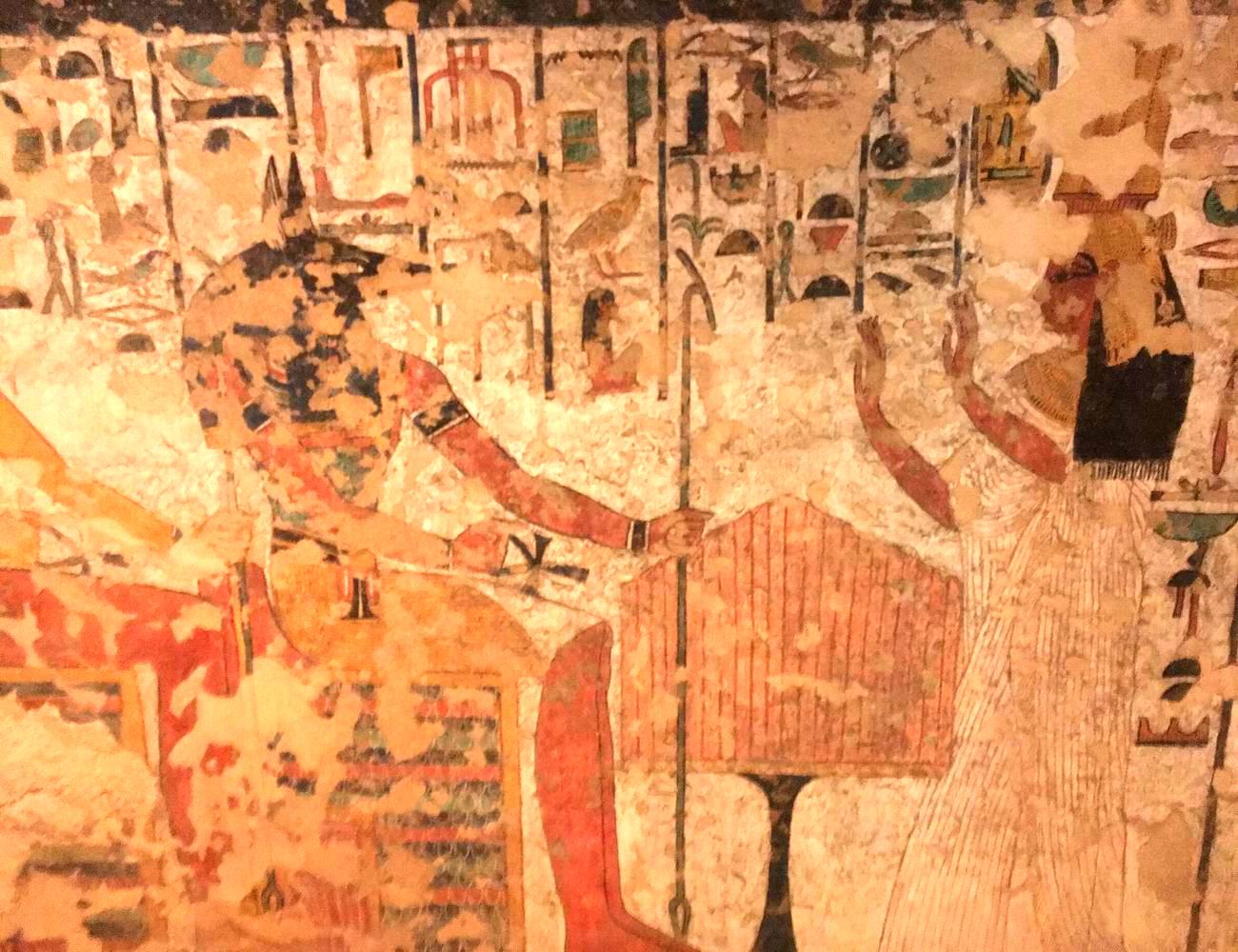 Le deux piliers djed de l'annexe. Sur cette reproduction de la tombe, au musée de Turin, les bras du pilier djed (à droite) ne sont pas croisés |