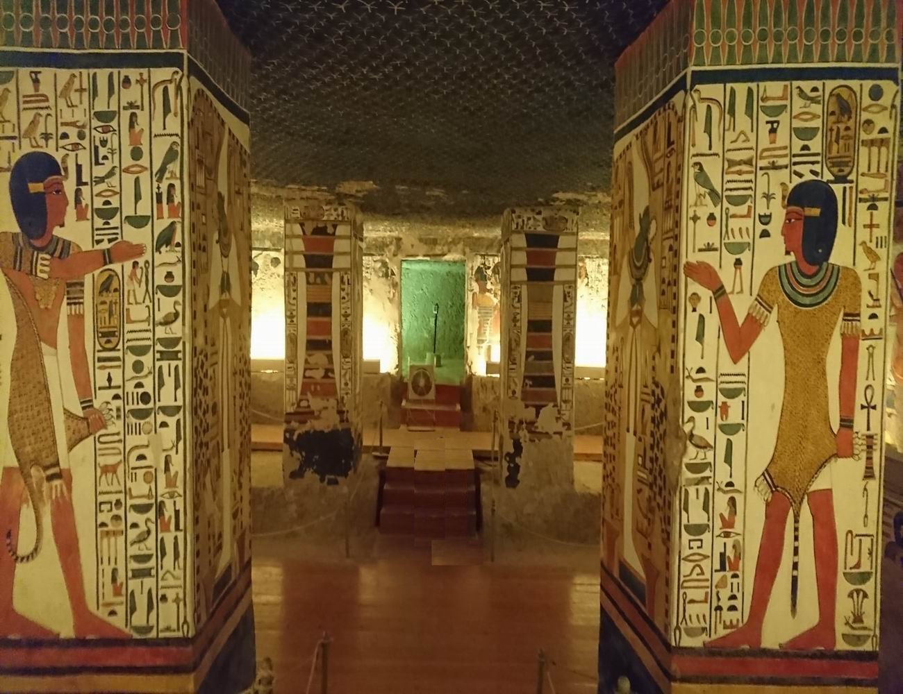 l'antichambre à la salle du sarcophage. La Reine descendra à la rencontre d'Osiris pour ensuite remonter vers la lumière du jour.