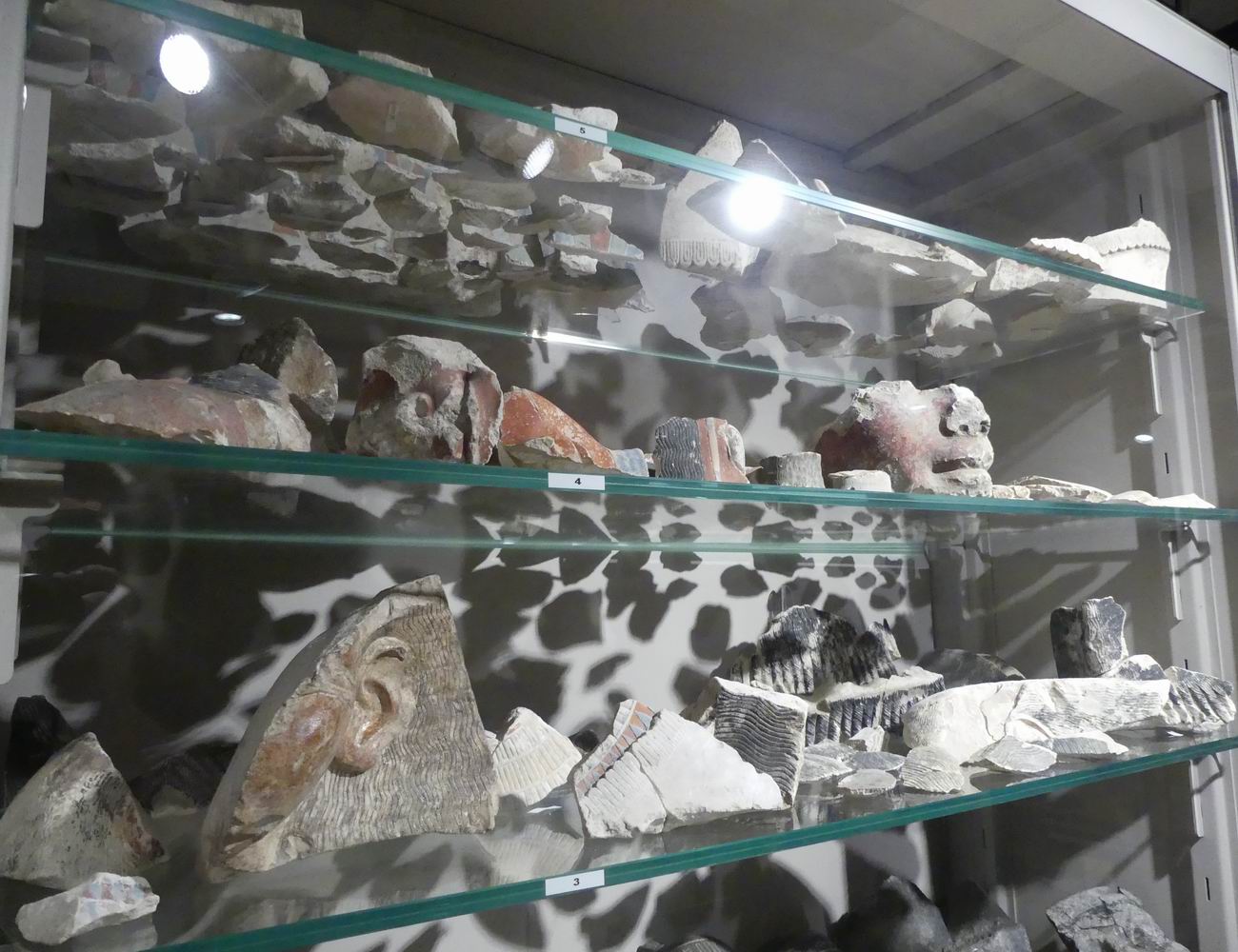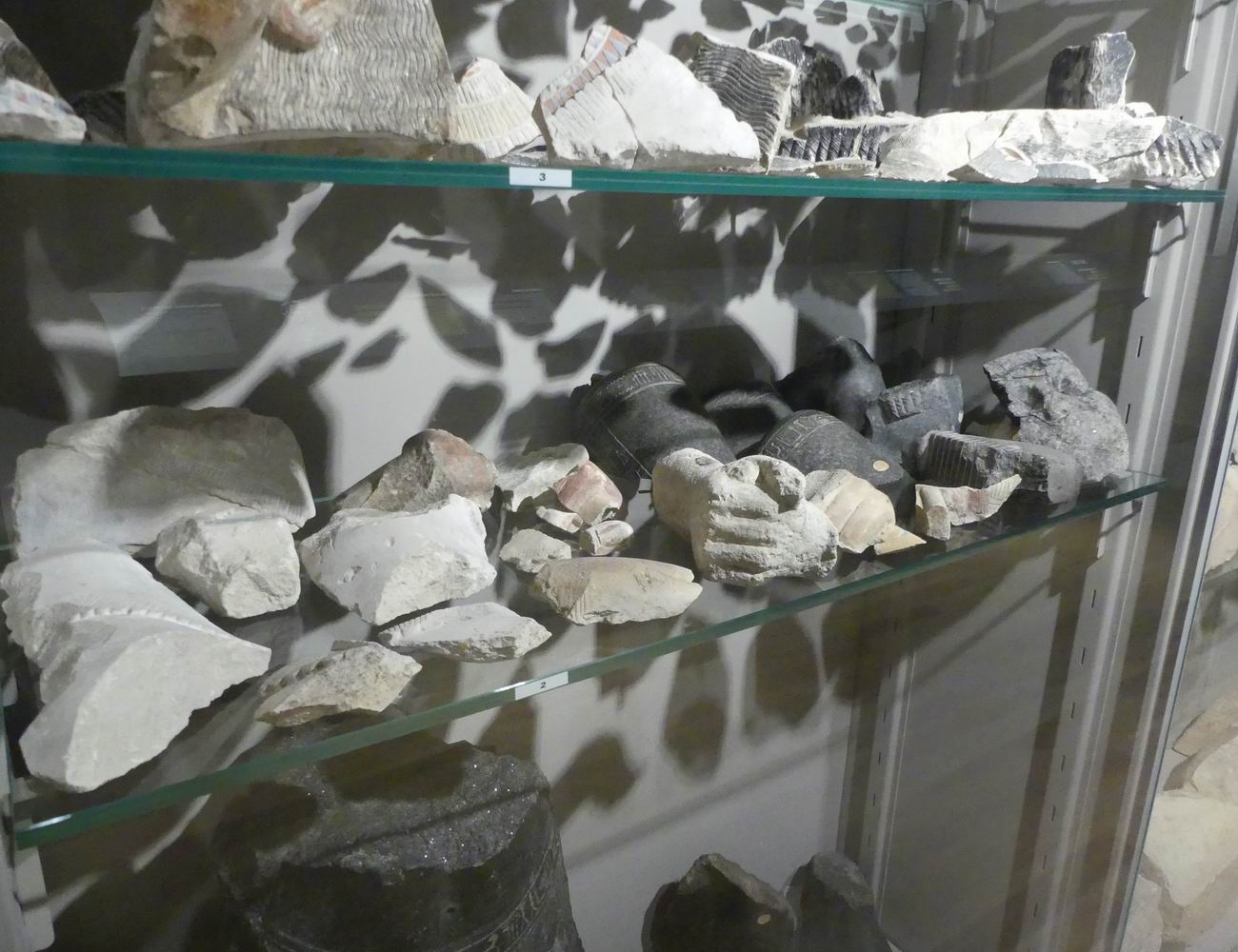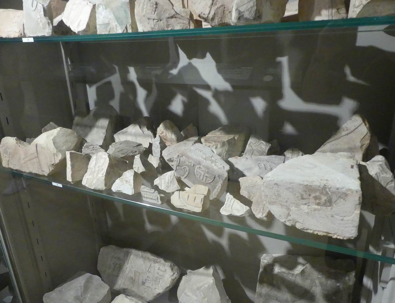 | Vitrine avec des fragments de blocs. |