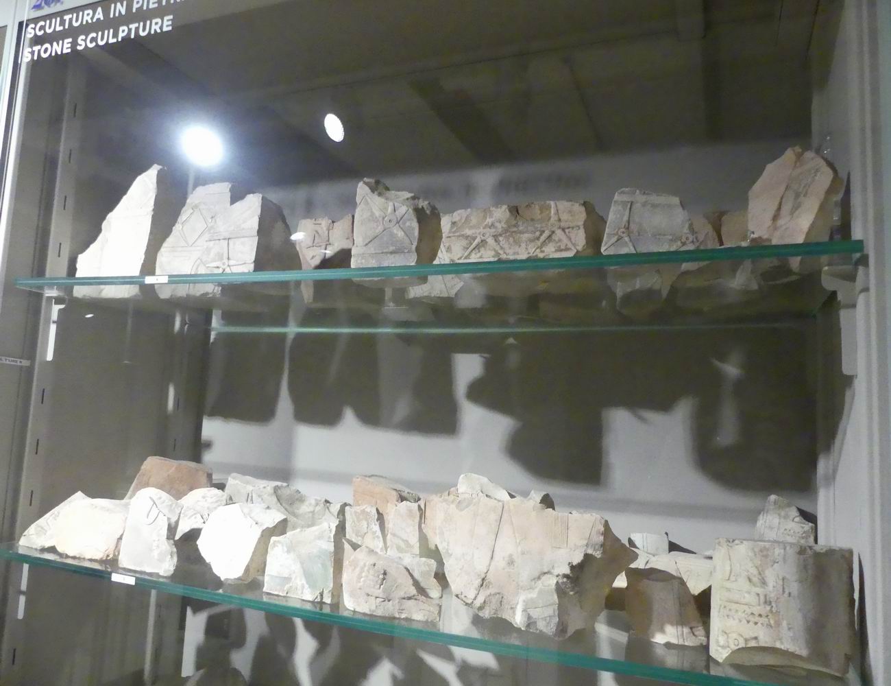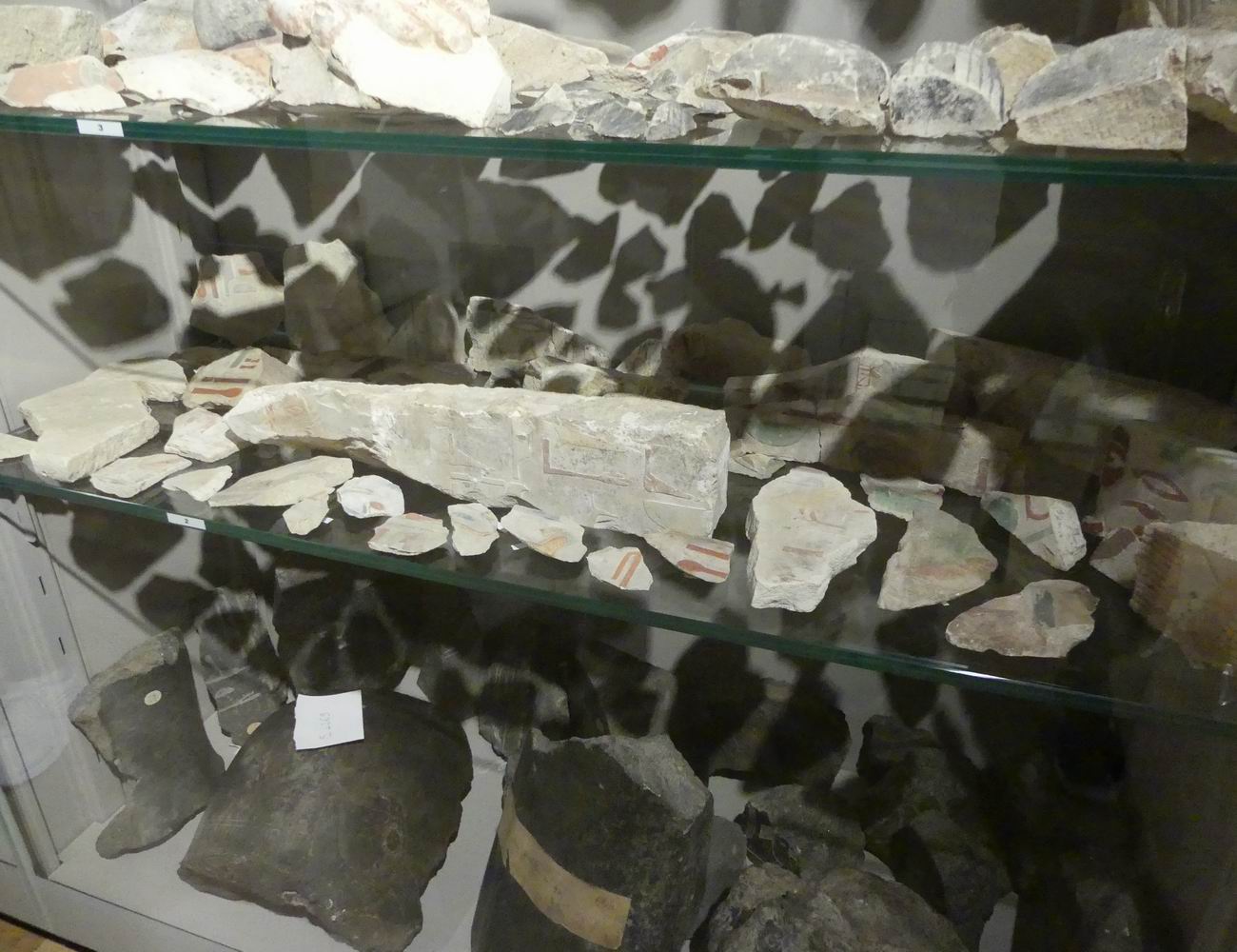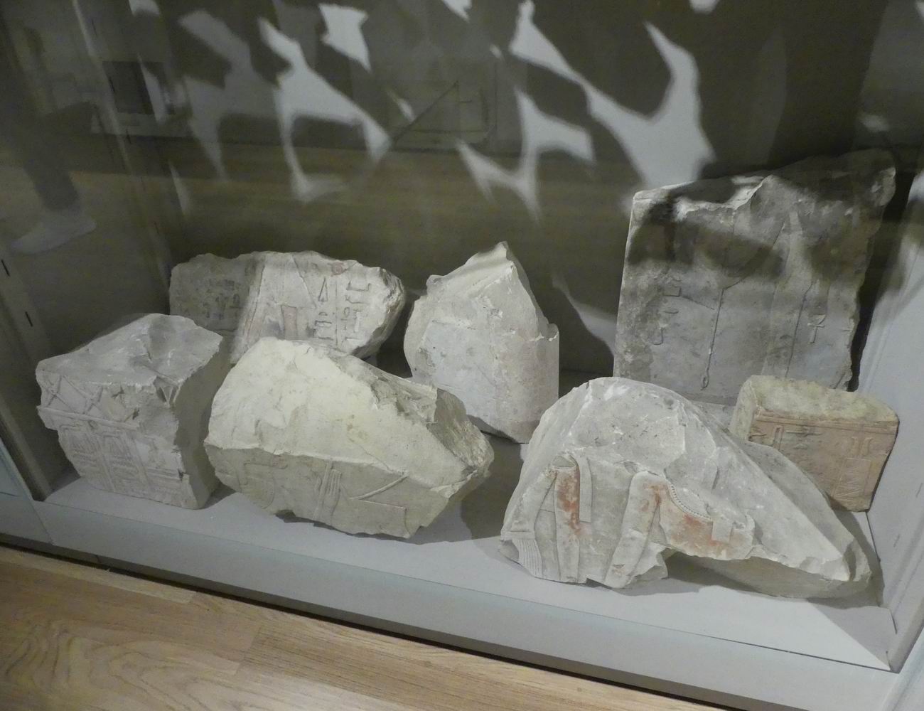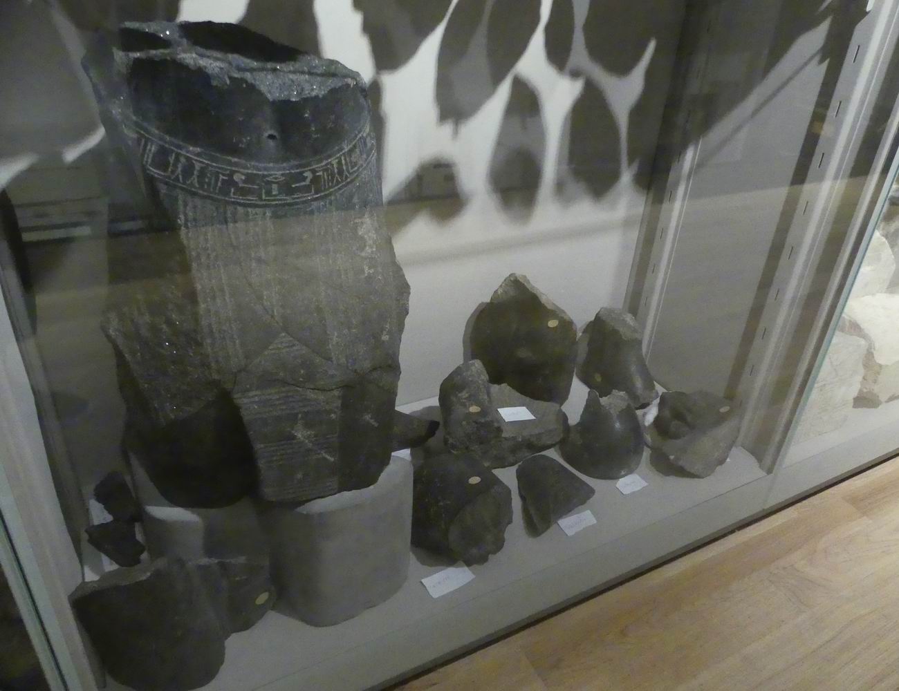 | Vitrine avec des fragments de blocs. |