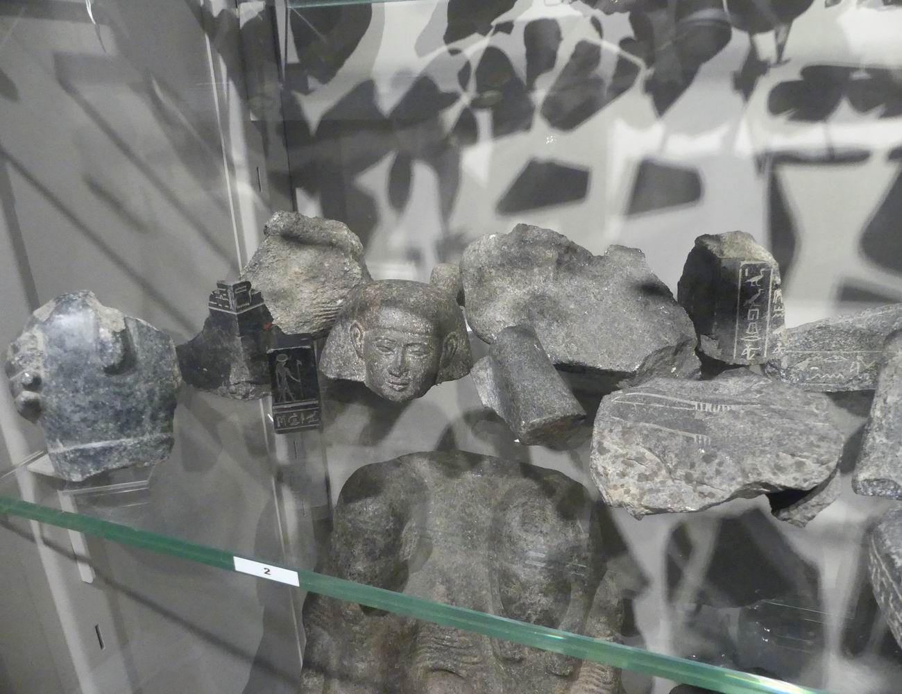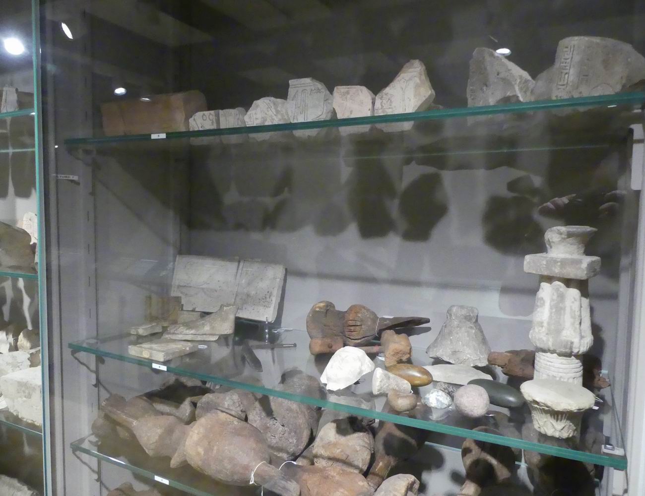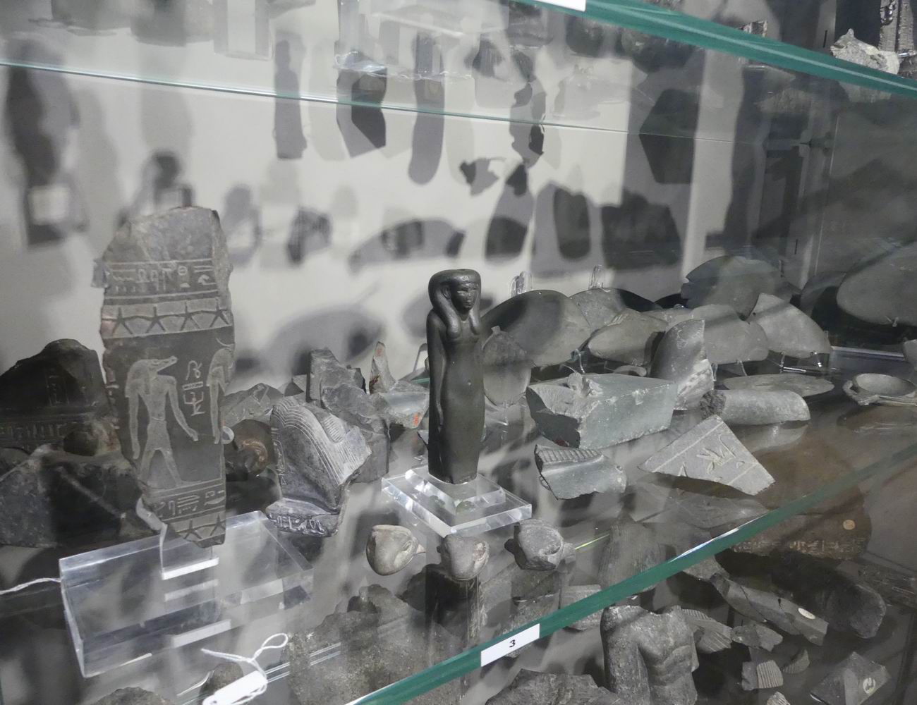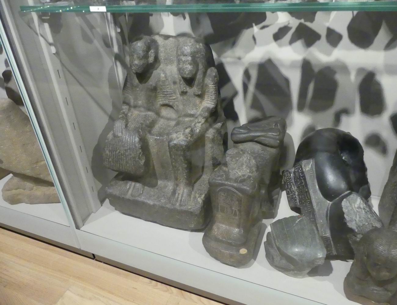 | Vitrine avec des fragments de statuettes. |