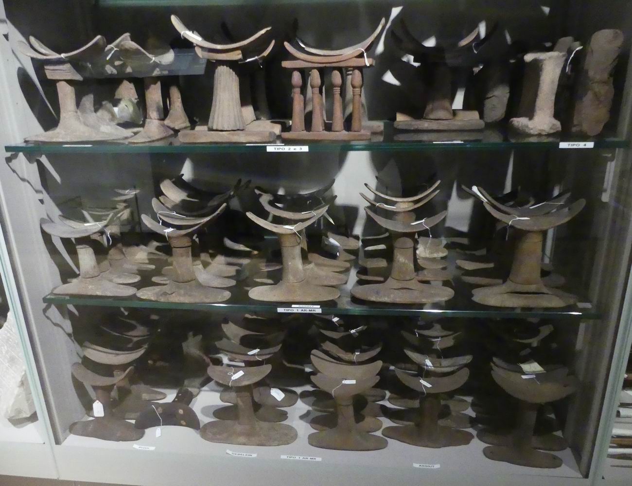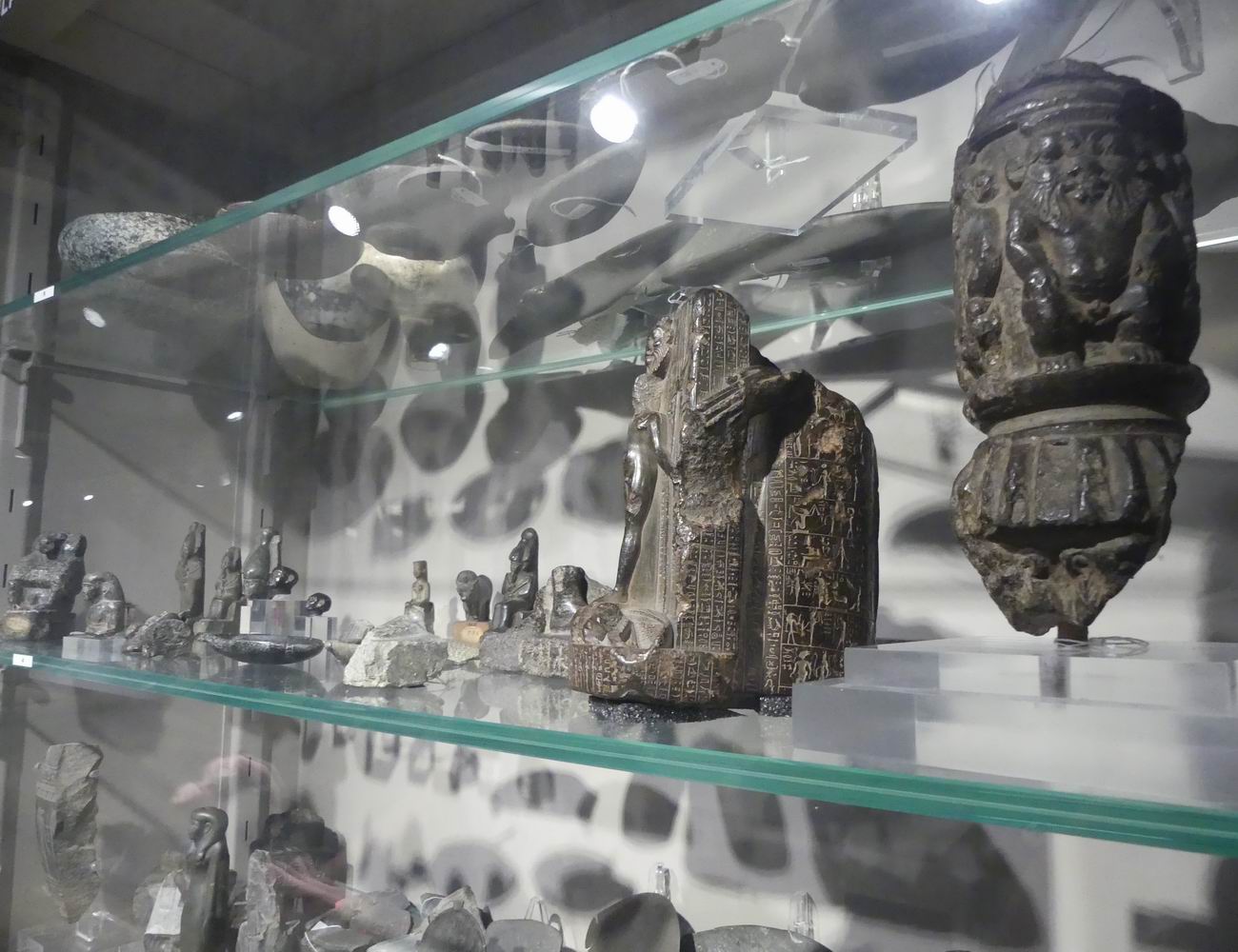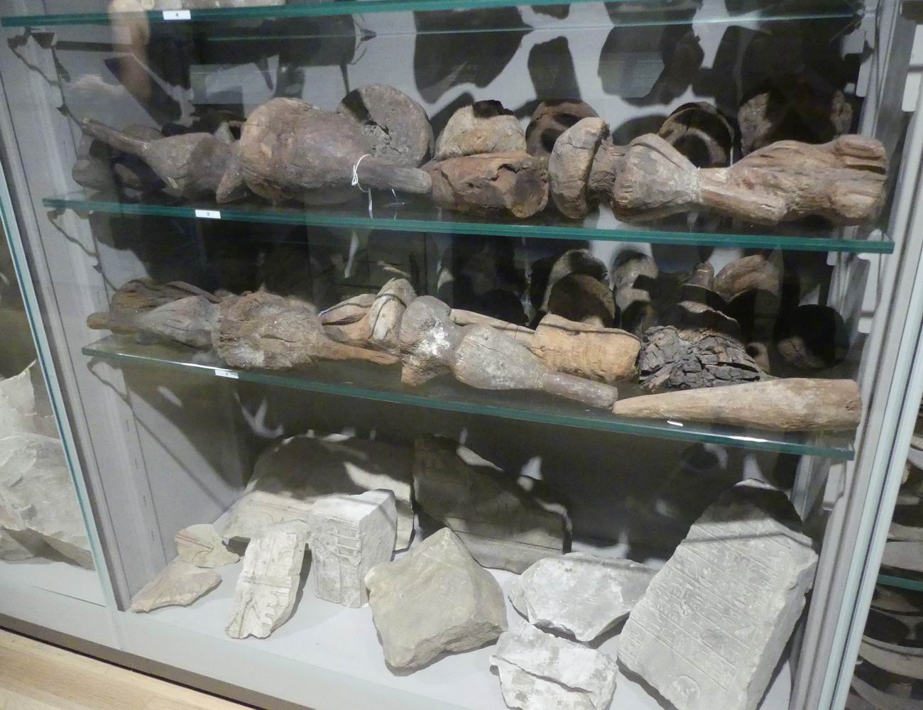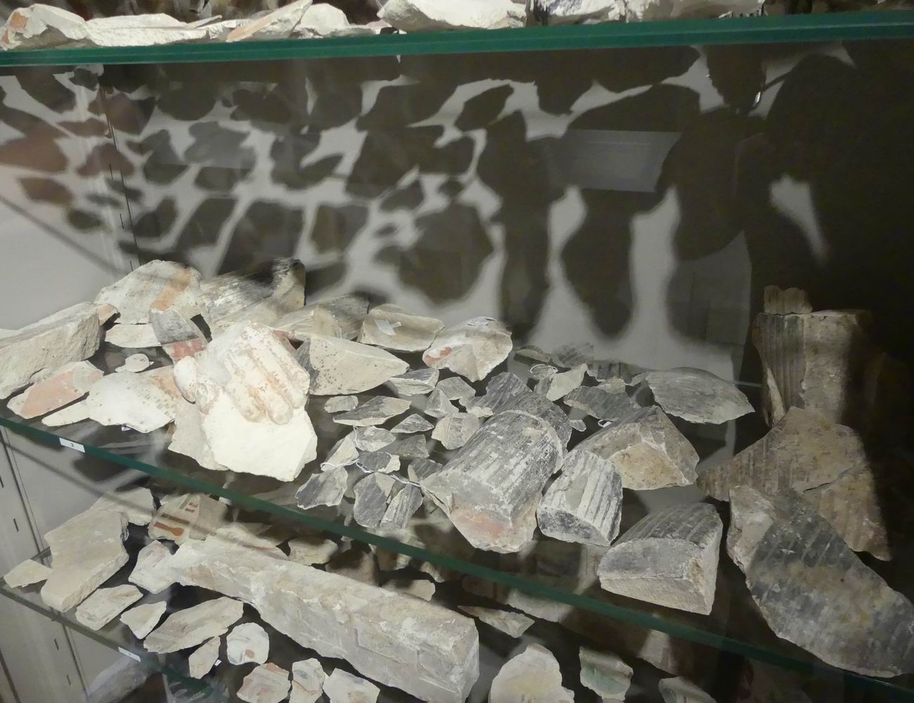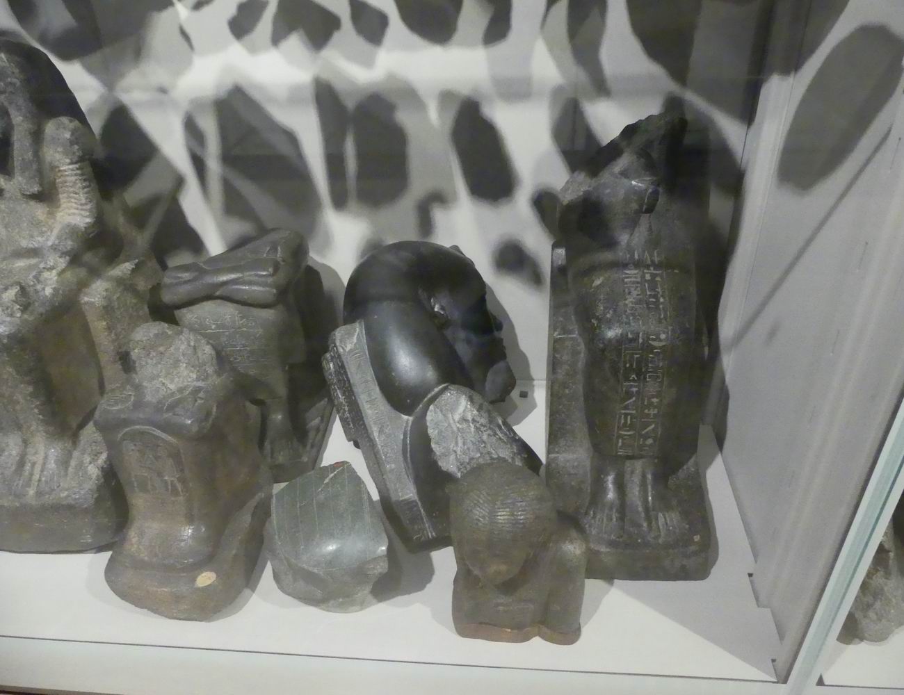 | Vitrine avec des fragments de statuettes. |