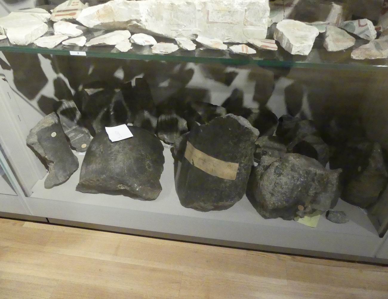 Vitrine avec des fragments de